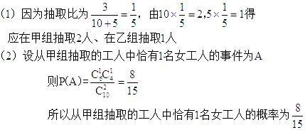 (Ⅱ)求从甲组抽取的工人中恰有1名女工人的概率;