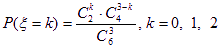 (2)可能取的值为0,1,2,