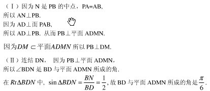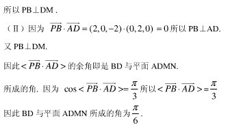 (2)求BD与平面ADMN所成的角.