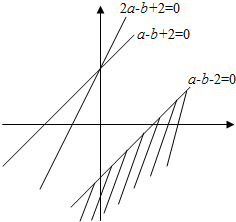 当满足得$\left\{\begin{array}{l}{f(1)=-b>0}\\{f(-1)=2a-b+2>0}\\{a-b+2≥0}\\{a-b-2≤0}\end{array}\right.$时,![]()