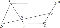 ∴存在实数λ,使$\overrightarrow{AH}=λ\overrightarrow{AF}$=$λ(\overrightarrow{AD}+\overrightarrow{DF})$=$λ(\overrightarrow{BC}+\frac{1}{2}\overrightarrow{AB})$=$λ\overrightarrow{BC}+\frac{λ}{2}\overrightarrow{AB}$;