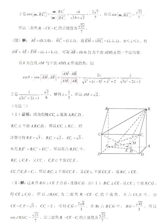 (Ⅱ) 求二面角B1-CE-C1的正弦值.
