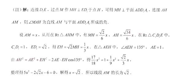 (Ⅲ) 设点M在线段C1E上, 且直线AM与平面ADD1A1所成角的正弦值为