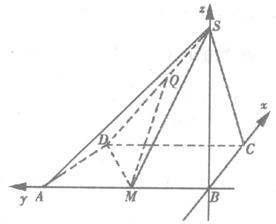 解法二:(2)如图所示,以B为原点,直线BC、BA、BS分别为x轴、y轴、z轴,建立空间直角坐标系B-xyz,设AB=SB=2,则相关点的坐标分别为