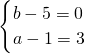 已知M={1,2,(a-1)+(b-5)i},N={-1,3},M∩N={3},实数a与b的值分别是