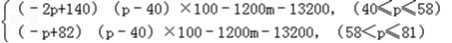 由已知,当p=52 时,S=0,即:(﹣2p+140)(p﹣40)×100﹣1200m﹣13200=0,