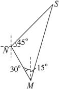 在△MSN中,∠SMN=45°,∠SNM=105°,∠MSN=30°.