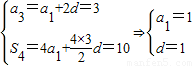 已知等差数列{an},前n项和为Sn,若a3=3,S4=10(1)求通项公式an;