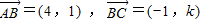 共线,进而可得4k-1×(-1)=0,解之即可.