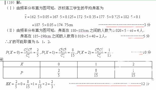 (Ⅱ)从样本中身高在180cm(含180cm)以上的同学中随机抽取2人,记身高在185cm