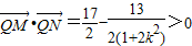 所以cosMQN>0.