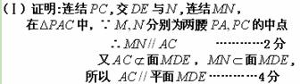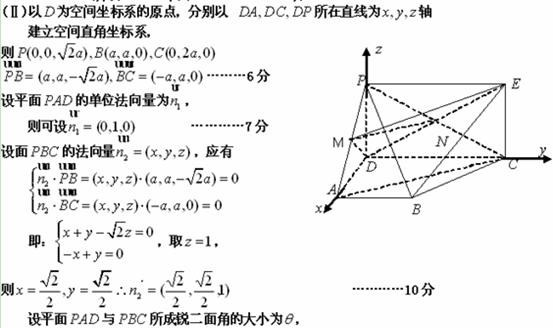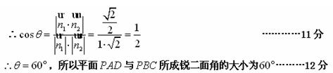 (本小题满分12分)(理科)如图,四边形为矩形,四边形为梯形,平面平面,,,.(Ⅰ)若为中点,求证:平面;(Ⅱ)求平面与所成锐二面角的大小.