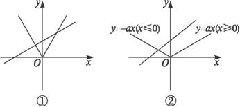 提示:直线y=x+a是斜率为1、纵截距为a的直线.曲线y=a|x|,当x≥0时,y=ax,这是一条斜率为a的射线;当x≤0时,y=-ax,是一条斜率为-a的射线.显然,当a>1时,y=x+a与y=-ax(x<0),y=ax(x>0)都相交,即直线y=x+a与y=a|x|有两个交点(如图①所示). 当0<a≤1时,y=x+a与射线y=-ax(x≤0)相交,而与射线y=ax(x≥0)不相交,故直线y=x+a与曲线y=a|x|只有一个交点(如图②所示). 答案:B