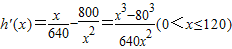 当x∈(80,120)时,h'(x)>0,h(x)是增函数.