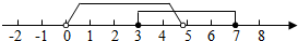 A∩B={x|3≤x<5}.
