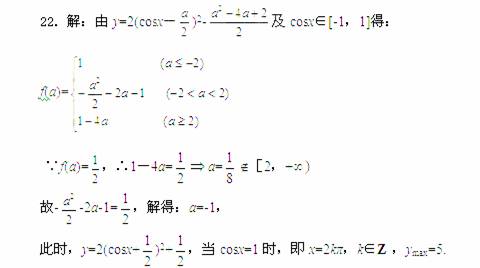 设关于x的函数y=2cos2x-2acosx-(2a+1)的最小值为f(a),试确定满足f(a)=的a值,并对此时的a值求y的最大值.