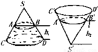 【答案】分析:圆锥正置与倒置时,水的体积不变,而水面是平行于底面的平面,此平面截得的小圆锥与原圆锥成相似体,它们的体积之比为对应高的立方比,由此结合题中数据加以计算,即可得到h2的大小.