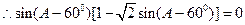 B=60°,∴A+C=120°,C=120°-A。…………1分