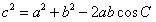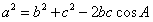 解:余弦定理:三角形任何一边的平方等于其他两边平方的和减去这两边与它们夹角的余弦之积的两倍。