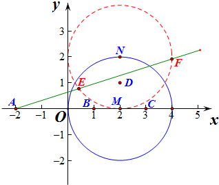 (Ⅲ)如图,根据题意可得:当EF为圆N的直径时,