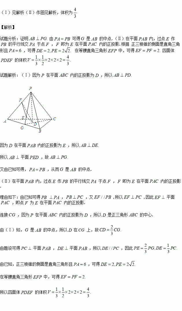 如图,在已知正三棱锥P-ABC的侧面是直角三角形,PA=6,顶点P在平面ABC内的正投影为点E,连接PE并延长交AB于点G.