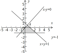 点评:本题考查的知识点是线性规划,考查画不等式组表示的可行域,考查数形结合求面积.