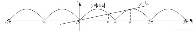轴右侧的图象有且仅有两个交点,由图象可知,当