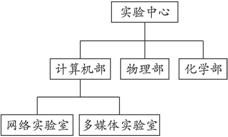 分析:实验中心是总的管理者,计算机部是网络实验室、多媒体实验室的管理者.
