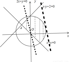 【答案】分析:作出不等式组表示的平面区域,由z=2x+y可得y=-2x+z,则z表示直线z=2x+y在y轴上的截距,截距越大,z越大,结合图象可知,当z=2x+y与圆相切时,z最大,由直线与圆心相切的 性质求z的最大值