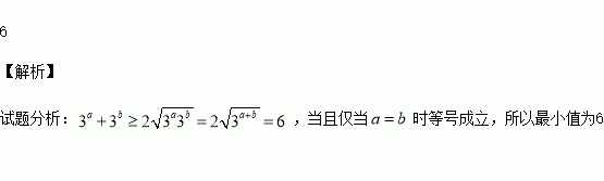 若实数a,b满足a+b=2,则3a+3b的最小值是________