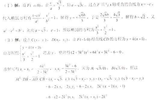 (Ⅱ) 设A, B分别为椭圆的左右顶点, 过点F且斜率为k的直线与椭圆交于C, D两点. 若