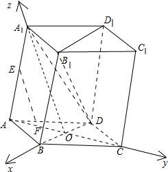 ∴$\overrightarrow{BD}=(-4,0,0),\overrightarrow{B{B}_{1}}=(0,1,2)$,设在侧棱AA1上存在点E,使OE⊥平面BB1D1D;