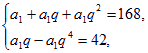 已知等比数列的前3项和为168,a2-a5=42,求a5,a7的等比中项.