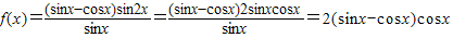 (1)原函数的定义域为{x|x≠kπ,k∈Z},最小正周期为π.