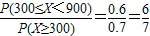 £¨¢ò£©ÀûÓøÅÂʵļӷ¨¹«Ê½¿ÉµÃP£¨X¡Ý300£©=1-P£¨X£¼300£©=0.7£¬P£¨300¡ÜX£¼900£©=P£¨X£¼900£©-P£¨X£¼300£©=0.9-0.3=0.6£¬ÀûÓÃÌõ¼þ¸ÅÂÊ£¬¼´¿ÉµÃµ½½áÂÛ