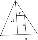 点评:本题考查了圆锥的内接圆柱的最大体积问题,解答的关键是利用比例关系构造以r为自变量的函数,利用基本不等式求最值.