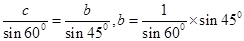 试题分析:由三角形内角和定理,A=180°-(45°+60°)=75°,所以,