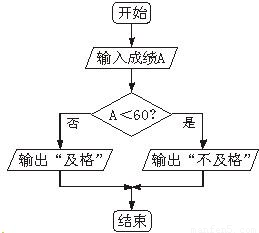 解:学生的成绩大于或等于60分,则输出“及格”,否则输出“不及格”.程序框图为: