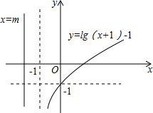 解:如图所示,画出y=lg(x+1)-1与x=m的图象,