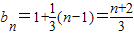 所以数列{bn}是等差数列,首项b1=1,公差为