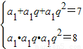 已知等比数列{an}中,a1+a2+a3=7,a1a2a3=8,求an.