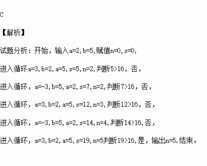 执行下图的程序框图,如果输入的a=2,b=5,那么输出的n=( )