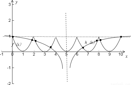 再根据h(x)=log5|x-1|的图象和 f(x)的图象都关于直线x=5对称,结合图象可知有8个交点,