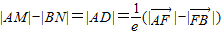 ,由双曲线的第二定义|AM|-|BN|=|AD|,进而根据