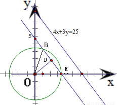 ∴到直线l:4x+3y=25的距离等于2且与已知圆相交的直线
