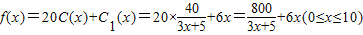 .建造费用为C1(x)=6x,则根据隔热层建造费用与20年的能源消耗费用之和为f(x),我们不难得到f(x)的表达式.