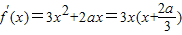 【答案】分析:(1)f′(x)=3x2+2ax+b,由f(x)在点x=0处取得极值,可得f′(0)=0,解得b=0.