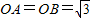 ∵OC=2,CA=CB=1,OA,OB为圆的切线