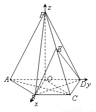 试题分析:本题主要考查线面位置关系的证明、二面角等基础知识,同时考查空间想象能力和计算能力.第一问,法一:利用E、F为PC、OC中点,得
