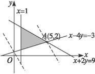 提示:在同一直角坐标系内分别画出可行域A和B,其中两直线x-y+1=0和x+y-4=0的交点为( 答案:C